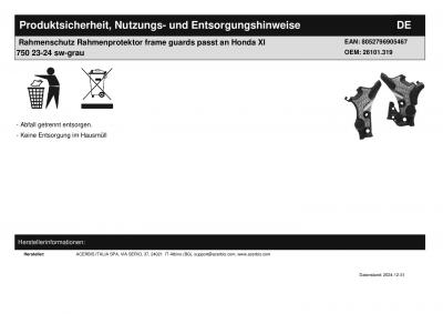Titel: | Rahmenschutz Rahmenprotektor frame guards passt an Honda Xl 750 23-25 sw-grau |