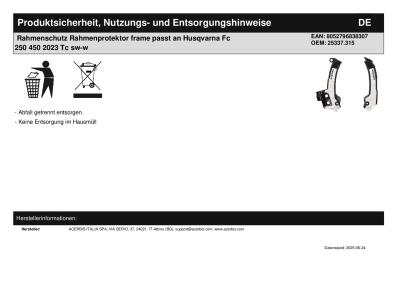 Titel: | Rahmenschutz Rahmenprotektor frame passt an Husqvarna Fc 250 450 2023 Tc sw-w |