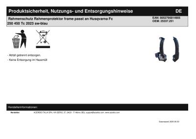 Titel: | Rahmenschutz Rahmenprotektor frame passt an Husqvarna Fc 250 450 Tc 2023 sw-blau |