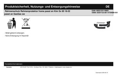 Titel: | Rahmenschutz Rahmenprotektor frame passt an Ktm Sx 85 18-22 passt an GasGas sw |