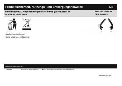 Titel: | Rahmenschutz X-Grip Rahmenprotektor frame guards passt an Ktm Sx 85 18-23 sw-w |
