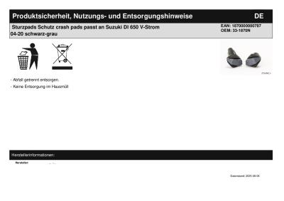Titel: | Sturzpads Schutz crash pads passt an Suzuki Dl 650 V-Strom 04-20 schwarz-grau |