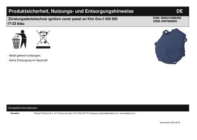 Titel: | Zündungsdeckelschutz ignition cover passt an Ktm Exc-f 450 500 17-23 blau |