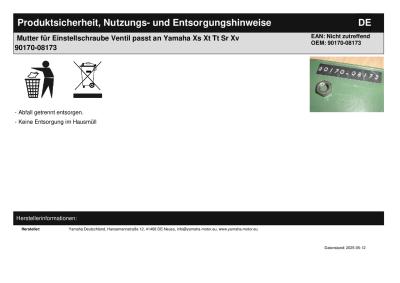 Titel: | Mutter für Einstellschraube Ventil passt an Yamaha Xs Xt Tt Sr Xv 90170-08173 |