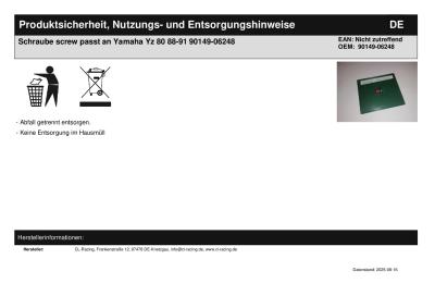 Titel: | Schraube screw passt an Yamaha Yz 80 88-91 90149-06248 |