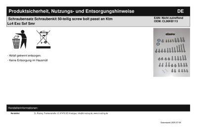 Titel: | Schraubensatz Schraubenkit 50-teilig screw bolt passt an Ktm Lc4 Exc Sxf Smr |
