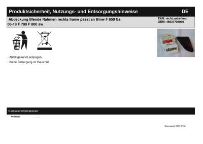 | Titel: | Abdeckung Blende Rahmen rechts frame passt an Bmw F 650 Gs 06-18 F 700 F 800 sw |