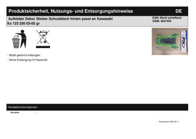Titel: | Aufkleber Dekor Sticker Schutzblech hinten passt an Kawasaki Kx 125 250 03-05 gr |