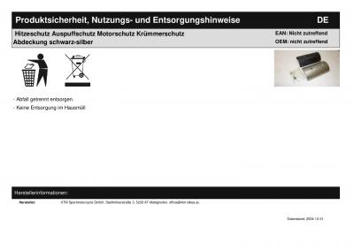 | Titel: | Hitzeschutz Auspuffschutz Motorschutz Krümmerschutz Abdeckung schwarz-silber |