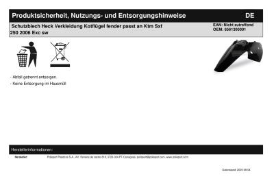 | Titel: | Schutzblech Heck Verkleidung Kotflügel fender passt an Ktm Sxf 250 2006 Exc sw |