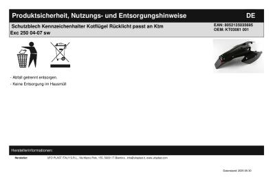 | Titel: | Schutzblech Kennzeichenhalter Kotflügel Rücklicht passt an Ktm Exc 250 04-07 sw |