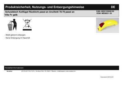 Titel: | Schutzblech Kotflügel Rücklicht passt an Ancillotti 78-79 passt an Villa Fv gelb |