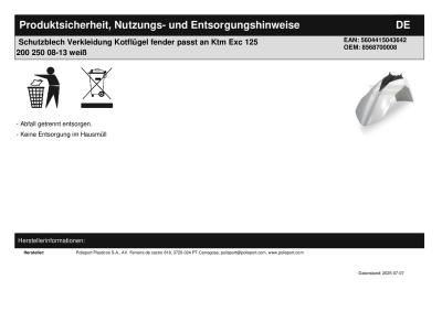 | Titel: | Schutzblech Verkleidung Kotflügel fender passt an Ktm Exc 125 200 250 08-13 weiß |