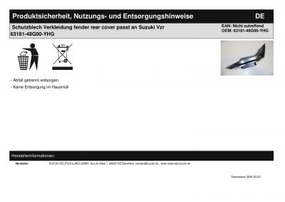 | Titel: | Schutzblech Verkleidung fender rear cover passt an Suzuki Vzr 63181-48G00-YHG |