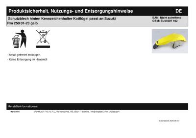 Titel: | Schutzblech hinten Kennzeichenhalter Kotflügel passt an Suzuki Rm 250 01-23 gelb |