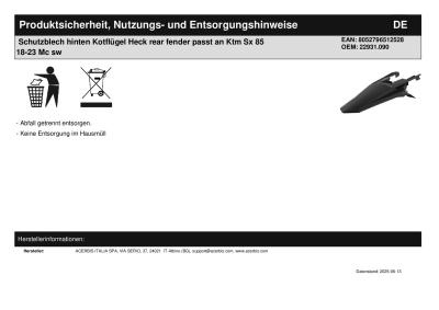 Titel: | Schutzblech hinten Kotflügel Heck rear fender passt an Ktm Sx 85 18-23 Mc sw |