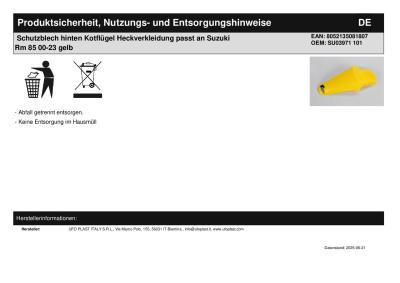 Titel: | Schutzblech hinten Kotflügel Heckverkleidung passt an Suzuki Rm 85 00-23 gelb |