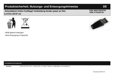 Titel: | Schutzblech hinten Kotflügel Verkleidung fender passt an Ktm Lc4 Exc 93-97 sw |
