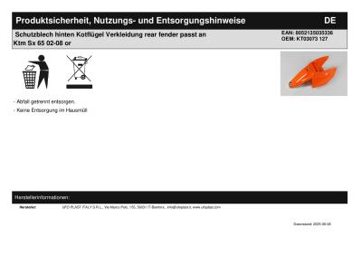 | Titel: | Schutzblech hinten Kotflügel Verkleidung rear fender passt an Ktm Sx 65 02-08 or |
