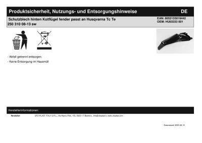 Titel: | Schutzblech hinten Kotflügel fender passt an Husqvarna Tc Te 250 310 08-13 sw |