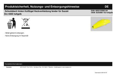 Titel: | Schutzblech hinten Kotflügel fender passt an Suzuki Drz 400E 00-23 hellgelb |