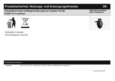 Titel: | Schutzblech hinten Kotflügel fender passt an Yamaha Yzf 450 Yz450f 10-13 schwarz |