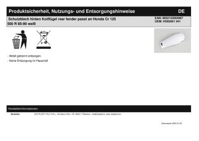 | Titel: | Schutzblech hinten Kotflügel rear fender passt an Honda Cr 125 500 R 85-90 weiß |