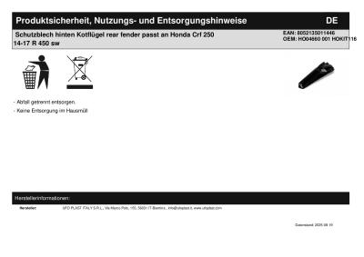 Titel: | Schutzblech hinten Kotflügel rear fender passt an Honda Crf 250 14-17 R 450 sw |