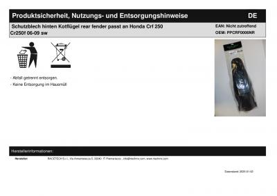 Titel: | Schutzblech hinten Kotflügel rear fender passt an Honda Crf 250 Cr250f 06-09 sw |