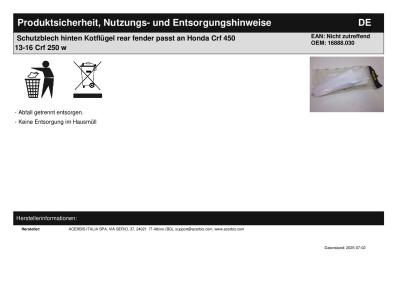 Titel: | Schutzblech hinten Kotflügel rear fender passt an Honda Crf 450 13-16 Crf 250 w |