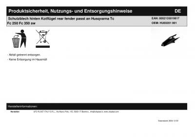 Titel: | Schutzblech hinten Kotflügel rear fender passt an Husqvarna Tc 250 14-16 Fc sw |