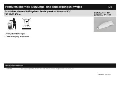 | Titel: | Schutzblech hinten Kotflügel rear fender passt an Kawasaki Kxf 250 17-20 450 w |