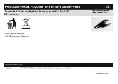 | Titel: | Schutzblech hinten Kotflügel rear fender passt an Ktm Exc-f 250 08-11 schwarz |
