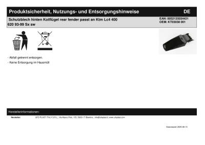 | Titel: | Schutzblech hinten Kotflügel rear fender passt an Ktm Lc4 400 620 93-99 Sx sw |