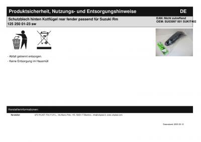 Titel: | Schutzblech hinten Kotflügel rear fender passt an Suzuki Rm 125 250 01-23 sw |