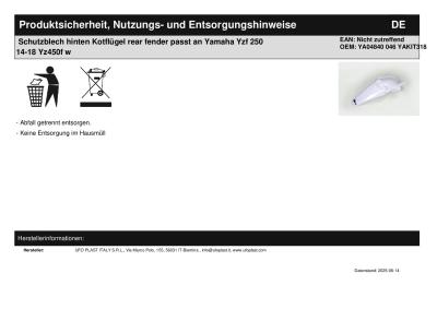 Titel: | Schutzblech hinten Kotflügel rear fender passt an Yamaha Yzf 250 14-18 Yz450f w |