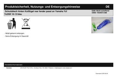 | Titel: | Schutzblech hinten Kotflügel rear fender passt an Yamaha Yzf Yz250f 10-13 blau |