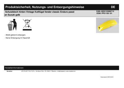 Titel: | Schutzblech hinten Vintage Kotflügel fender classic Enduro passt an Suzuki gelb |