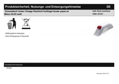 | Titel: | Schutzblech hinten Vintage Rücklicht Kotflügel fender passt an Maico 83-93 weiß |