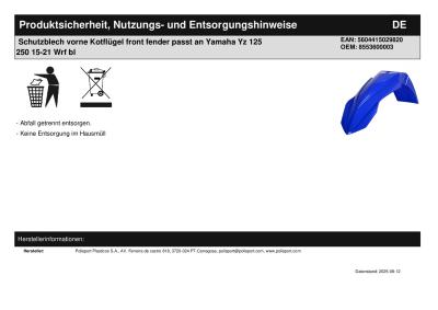 Titel: | Schutzblech vorne Kotflügel front fender passt an Yamaha Yz 125 250 15-21 Wrf bl |
