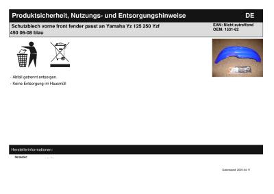 | Titel: | Schutzblech vorne front fender passt an Yamaha Yz 125 250 Yzf 450 06-08 blau |