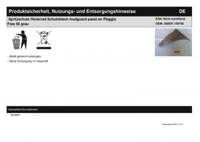 | Titel: | Spritzschutz Hinterrad Schutzblech mudguard passt an Piaggio Free 50 grau |