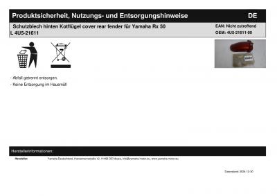 Schutzblech hinten Kotflügel rear fender passt an Yamaha Rx 50 L 4U5-21611