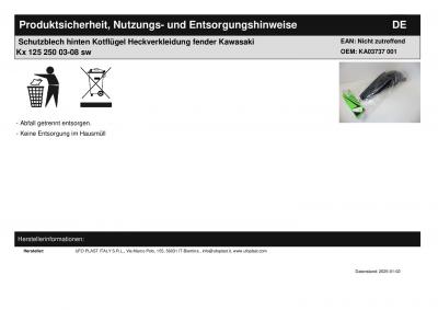 Titel: | Schutzblech Kotflügel Heckverkleidung fender passt an Kawasaki Kx 125 250 -08 sw |