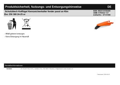 | Titel: | Schutzblech Kotflügel Kennzeichenhalter fender passt an Ktm Exc 250 300 24-25 or |