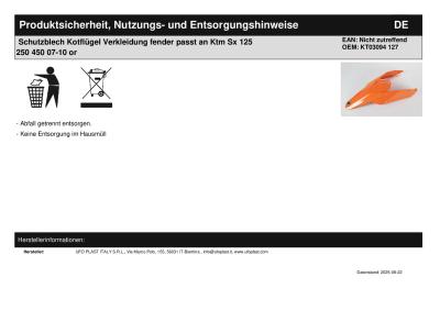 Titel: | Schutzblech Kotflügel Verkleidung fender passt an Ktm Sx 125 250 450 07-10 or |