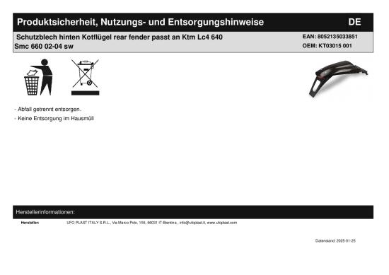 | Titel: | Schutzblech Kotflügel rear fender passt an Ktm Lc4 640 Smc 660 02-04 sw B-WARE |