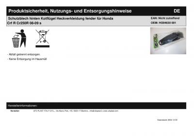 Titel: | Schutzblech hinten Kotflügel Heckverkleidung fender passt an Honda Crf R Cr250R 08-09 s |