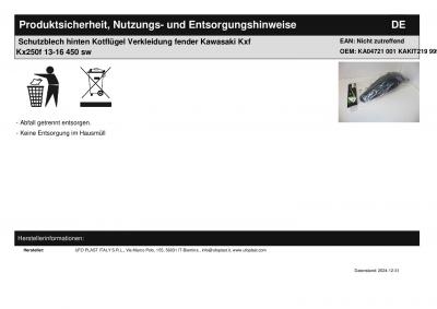 | Titel: | Schutzblech hinten Kotflügel Verkleidung fender Kawasaki Kxf Kx250f 13-16 450 sw |