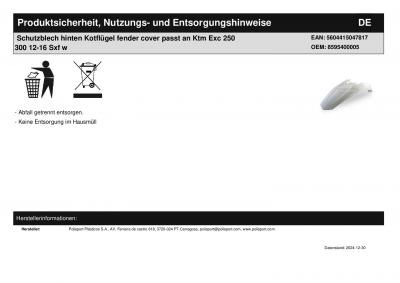 Titel: | Schutzblech hinten Kotflügel fender cover passt an Ktm Exc 250 300 12-16 Sxf w |